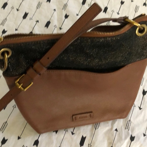 ❤️ black shimmer suede🙌 against the leather on crossbody lots of pockets