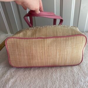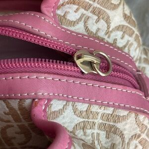Fossil signature print pink leather trim shoulder bag