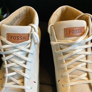 Fossil suede and leather ivory and brown high top sneaker shoes size 10 Unisex