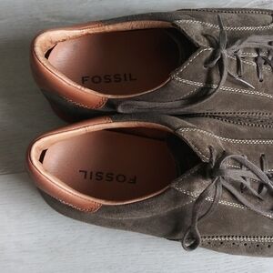Fossil suede wingtip Oxfords brown greenish leather 13 men's