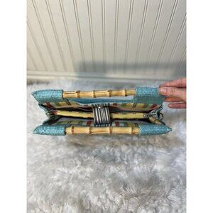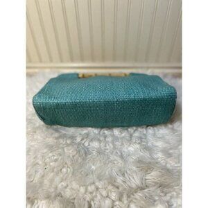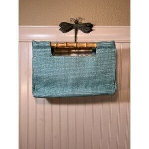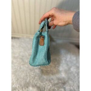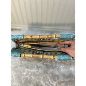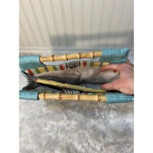 Fossil Straw Handbag bamboo handles turquoise bluesnap closure