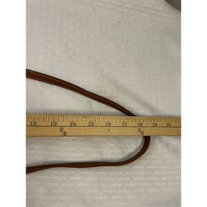 Fossil tan leather crossbody satchel strap. measures 11"x8". minor scuffs on the bag. zipper.