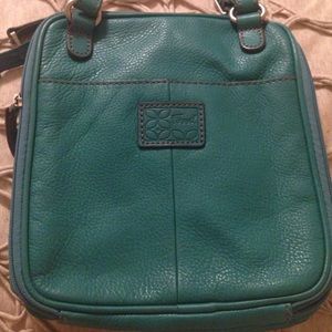 Super cute and designed SO functional. The credit card slots on the inside are definitely a bonus. The turquoise is a beautiful color and I got so many compliments on it. It has normal wear and tear but nothing major or worth pointing out.