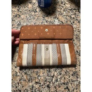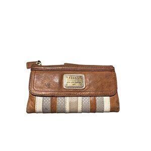 Fossil wallet long live vintage 1954. This wallet is preowned. Does show signs of wear