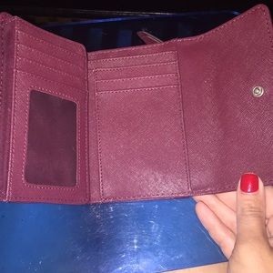 Pebbled leather eggplant colored fossil wallet with many, many pockets and credit card slots as well as change purse in back. Lightly used.