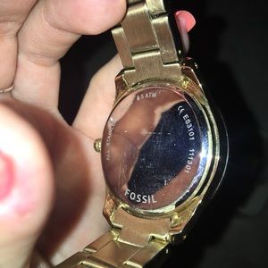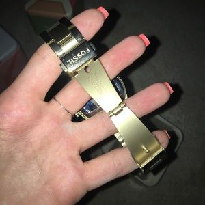 Gold fossil watch! Excellent used condition. Minimal scratches, just from everyday wear. Comes with the box and extra links. Needs a new battery.