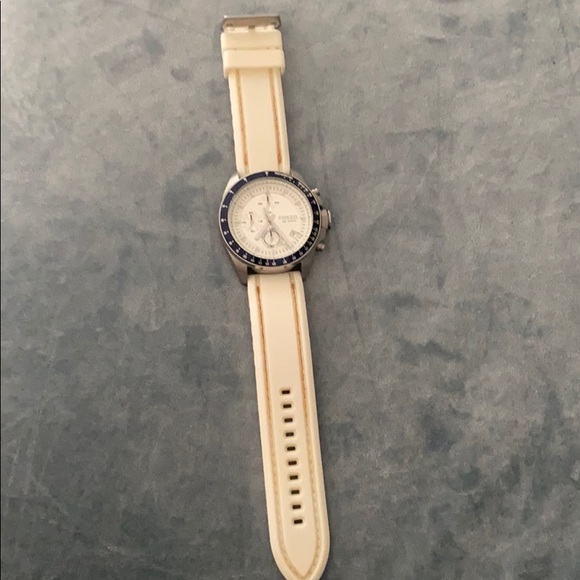 Needs battery. Watch like new, band shows wear. You can buy many colored interchangeable bands for this watch.