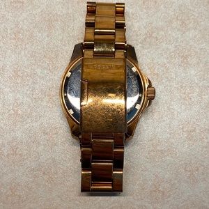 Teal and rose gold authentic Fossil. Good condition no scratches on the face. Needs new battery.