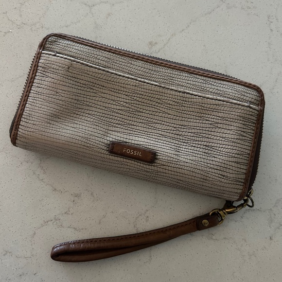 Fossil zip around wristlet Shows light wear Includes strap
