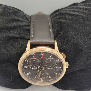 Fossil Abilene CH3099 Women's Gray Leather Analog Dial Quartz Wrist Watch, 34 mm