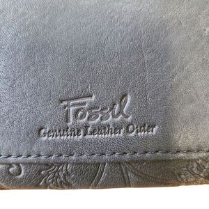 Fossil Black Leather Wallet, Embossed Floral Pattern