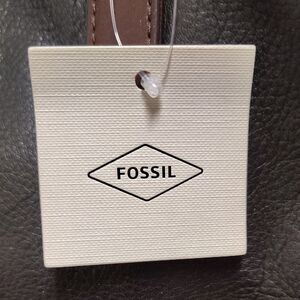 This Fossil briefcase combines a sophisticated black leather exterior with contrasting brown accents, offering a stylish and professional look. The gold-toned hardware adds a touch of elegance, making it perfect for business or travel. With its ample storage and refined design, this briefcase is both functional and fashionable.