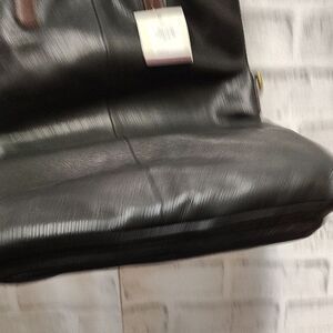 Fossil Black and Brown Leather Briefcase with Gold Accents