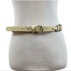 Fossil Brand Ladies Cream and Silver Genuine Leather Belt Size Medium
