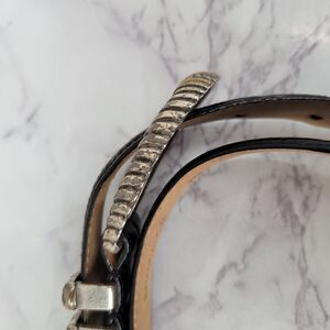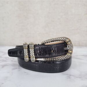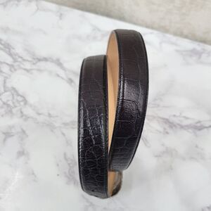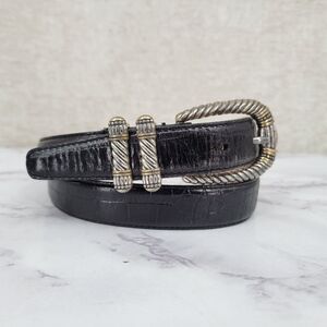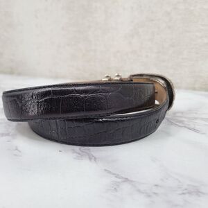 Fossil Croco Croc Embossed Cowhide Black Leather Belt Silver Accents
