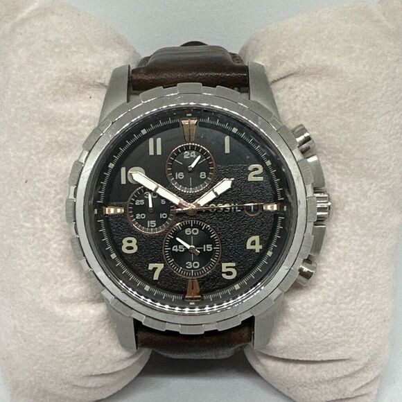 Fossil Dean FS4828 Men Brown Leather Analog Black Dial Chronograph Watch HME362