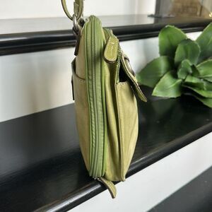 This Fossil genuine leather crossbody bag in a vibrant lime green is both stylish and functional. The leather is soft and luxurious, complemented by Fossil’s signature patterned lining in pristine, immaculate condition. The interior offers impressive organization with multiple slip pockets, a zip pocket, and compartments to keep all your essentials neat and accessible.