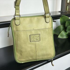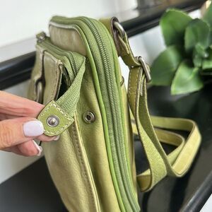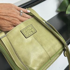 Fossil handbag, leather crossbody purse, lime green Fossil bag, travel bag, organized purse, Fossil shoulder bag.