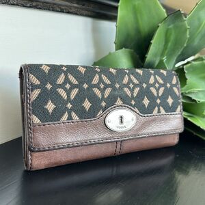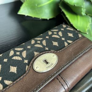 Fossil Genuine Leather & Signature Canvas Wallet Clutch – Versatile, Easy Grab & Go