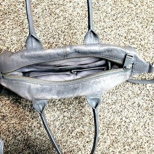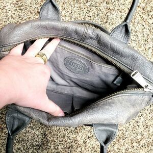 Gorggray pebbled leather satchel crossbody purse by Fossil some wear in the gray coloring all wear pictured above