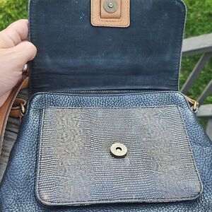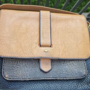 Keywords: Fossil leather crossbody, colorblock purse, pebbled leather bag, vintage Fossil bag, boho leather satchel, everyday bag, adjustable strap, casual handbag, colorblock