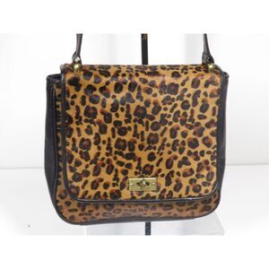 Fossil Memoir Leopard Print Calf Hair Black Leather Crossbody Bag Purse Small