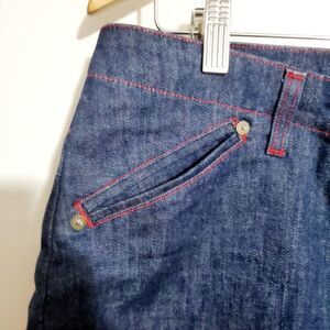 Vintage dark blue jean shorts. Front and back pockets. Pre-owned in great condition. Please refer to pictures for best description and condition verification.