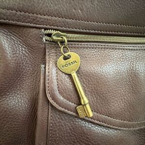 Fossil Vintage Leather Shoulder Bag Brown Style 75082 Key Charm Adjustable Strap