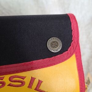 New with tags Vintage Fossil Wallet. Internal zip around closure with external snaps. Loops on back for a potential belt