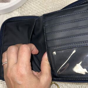 Large zip around wallet includes a passport holder pocket