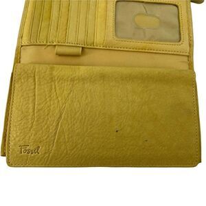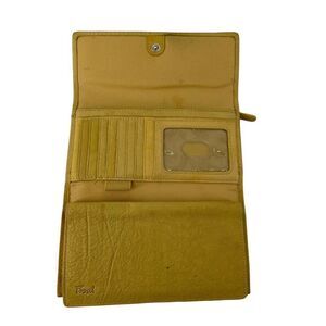 Fossil Wallet Yellow Genuine Leather Trifold Classic Checkbook Insert Zip Pocket Card Slots Classic