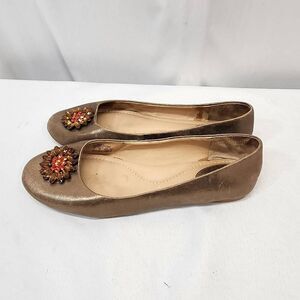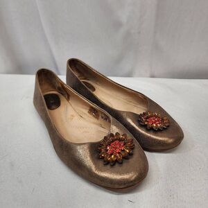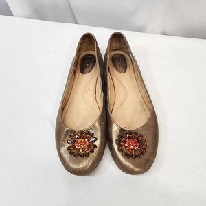 Fossil Womens Leather Ballet Flats Metallic Gold Flower brooch Size 11