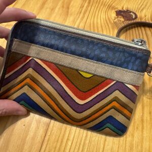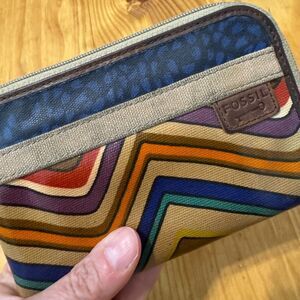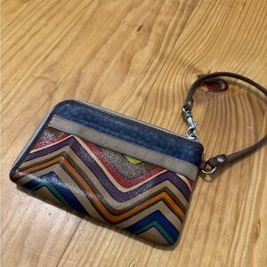 Fossil Womens Small Vinyl Zip Coin Card Holder Purse Stripes