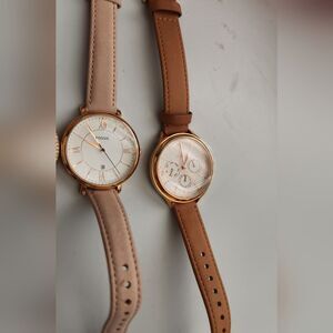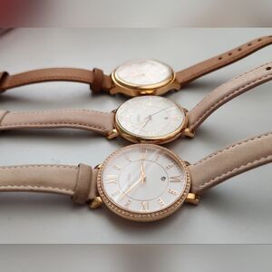 Discover timeless elegance with this set of women's fossil watches. Featuring a sophisticated design in beige, cream, and tan, these watches are perfect for any occasion. Elevate your accessory collection with these versatile pieces.
