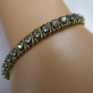 Fossil Woven Cord Toggle Bracelet Rhinestone Sparkly Green Brown Jeweled 7+"