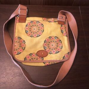 Fossil Yellow and Brown Crossbody Bag with Floral Print
