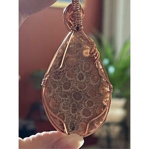 Fossil Coral stone crystal wire wrap wrapped pendant copper handmade artisan