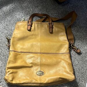 Fossil Brown/Tan Leather Foldover Organizer Shoulder Bag Brass Hardware Fold
