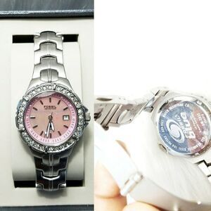Stunning watch, shows signs of wear still looks new..... original silver and will never fade, needs new battery..... has few scuffles that is not obvious to the eyes and the date works. The background looks like pears in pink color.