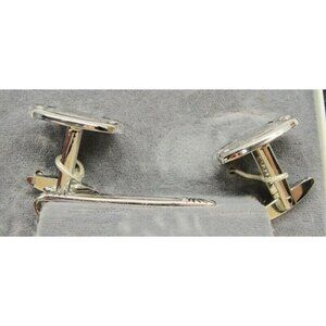 Vintage Foster Cufflinks Set and Tie Bar in Silver Tone with textured finish. Perfect accent to any shirt or suit, comes in original box.