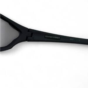 Foster Grant Men's Wrap Black Sunglass: A blade-style sunglass with a lightweight, matte black frame and rubberized temple insets and nose pads for better grip.