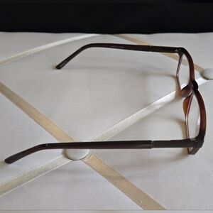 Elegant brown eyeglasses with a sleek design. Perfect for a sophisticated look.