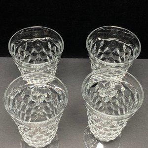 This Fostoria American Clear Set of 4 Footed Iced Tea Water Goblets is an elegant addition to any table setting. Made from clear glass, each goblet holds up to 12 ounces.