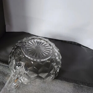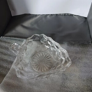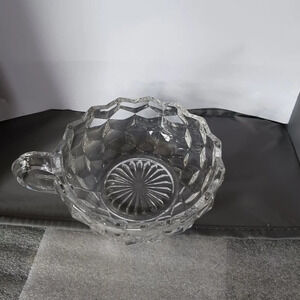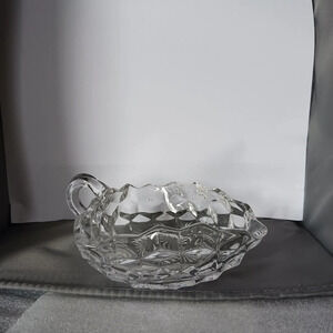 Fostoria American vtg clear glass set of 2 whitehall pattern, scalloped edge,handled nappies,1 triangular and second round in excellent condition without box from smoke and pet free home