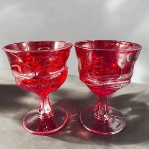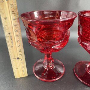 Fostoria Argus Ruby Red Water Goblet Drinking Glasses Set 2 Cups Barware Heavy