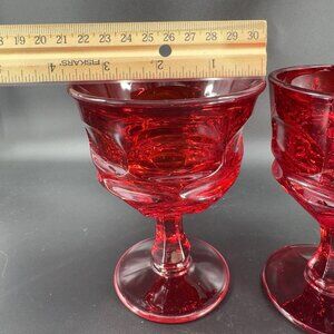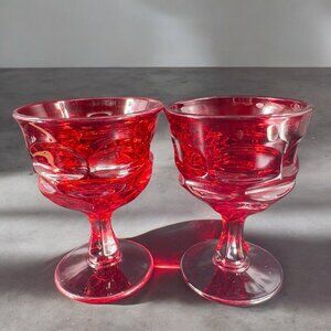 Fostoria Argus Ruby Red Water Goblet Drinking Glasses Set 2 Cups Barware Heavy