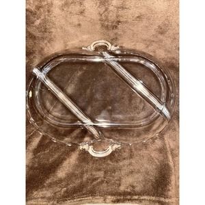 Near mint condition. Glass is very clear. Handles on two sides. Very simple yet elegant piece.