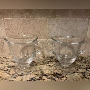 The set is characterized by its clear glass, wavy rim, and often a raindrop-like design.