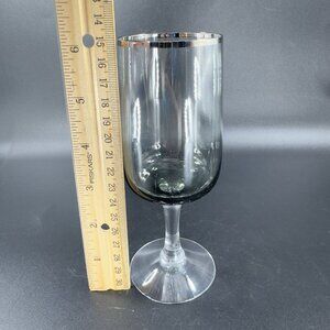 Fostoria Cherish Smoke Grey and Platinum Trim Set 2 Drinking Glasses Cups Glass