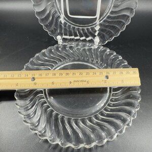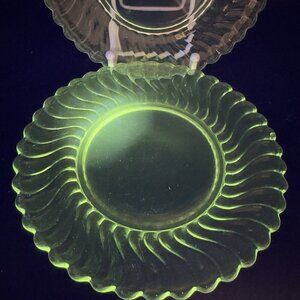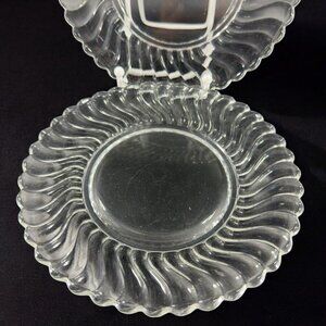 Fostoria Colony Swirl Dish Plate Set 2 Clear Glass Manganese 365nm Green UV Glow